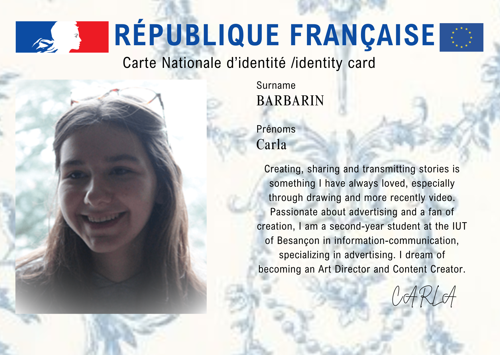 This ID offers a playful glimpse into who I am..